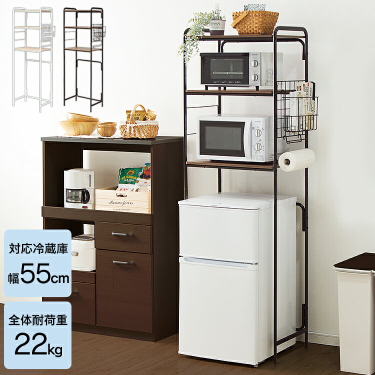 価格: 9,980円 レビュー評価:0.0 レビュー数:0 電子レンジもまとめ収納!キッチンをスマートに!空いている冷蔵庫の上をたっぷり収納スペースにしてくれる冷蔵庫ラックです。キッチン家電から小物までこれひとつでまとめてすっきり収納。棚は耐荷重約12kgで電子レンジもOK!安心安全、しっかり丈夫な構造です。棚は10cm間隔で7段階調節可能だから収納するものに合わせてカスタマイズが可能です。水や汚れに強い防水加工なのでサッと拭くだけでお手入れも簡単。サイドのメッシュパネルはエプロンや小物などすぐに使いたい物の収納にも最適!足には床キズ防止のフエルト付き。圧迫感なくスタイリッシュでお部屋に馴染むインテリア。爽やかで清潔感のあるホワイトと落ち着いた雰囲気のブラック。冷蔵庫だけではなく、ゴミ箱上のラックなどとしても活躍!≪お客様組立品≫●商品サイズ(cm)外寸:幅約58×奥行約39.5×高さ約180可動棚:幅約55.5×奥行約39バスケット 内寸:幅約2 (更新日時:2019/04/04 23:03) Supported by 楽天ウェブサービス |